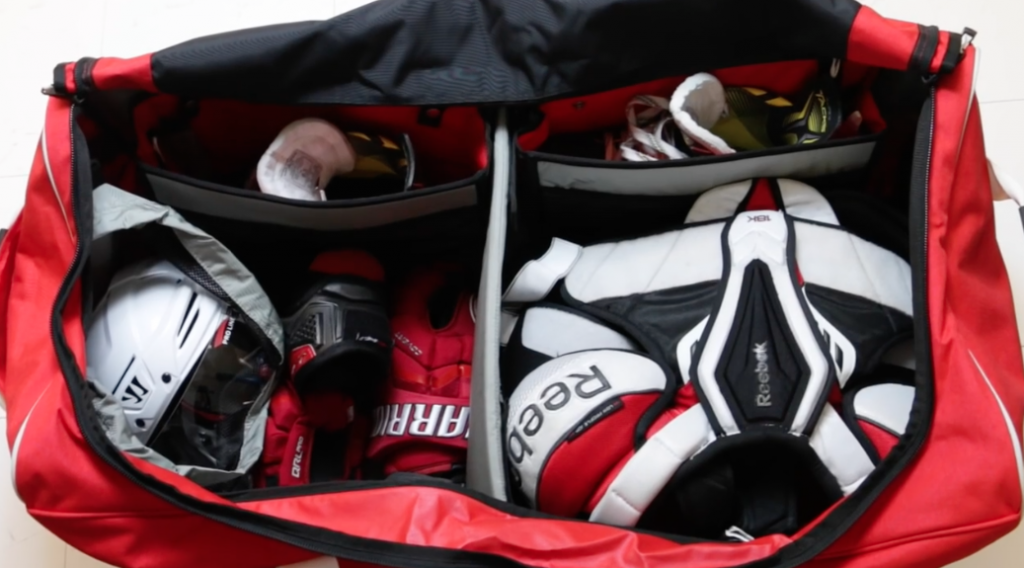 Another fantastic bag option would be Pacific Rinks player bag. This bag also features removable adjustable storage dividers. This will help to keep any player organised and reduce stress of searching for small items lost at the bottom of their old unorganised hockey bag.
